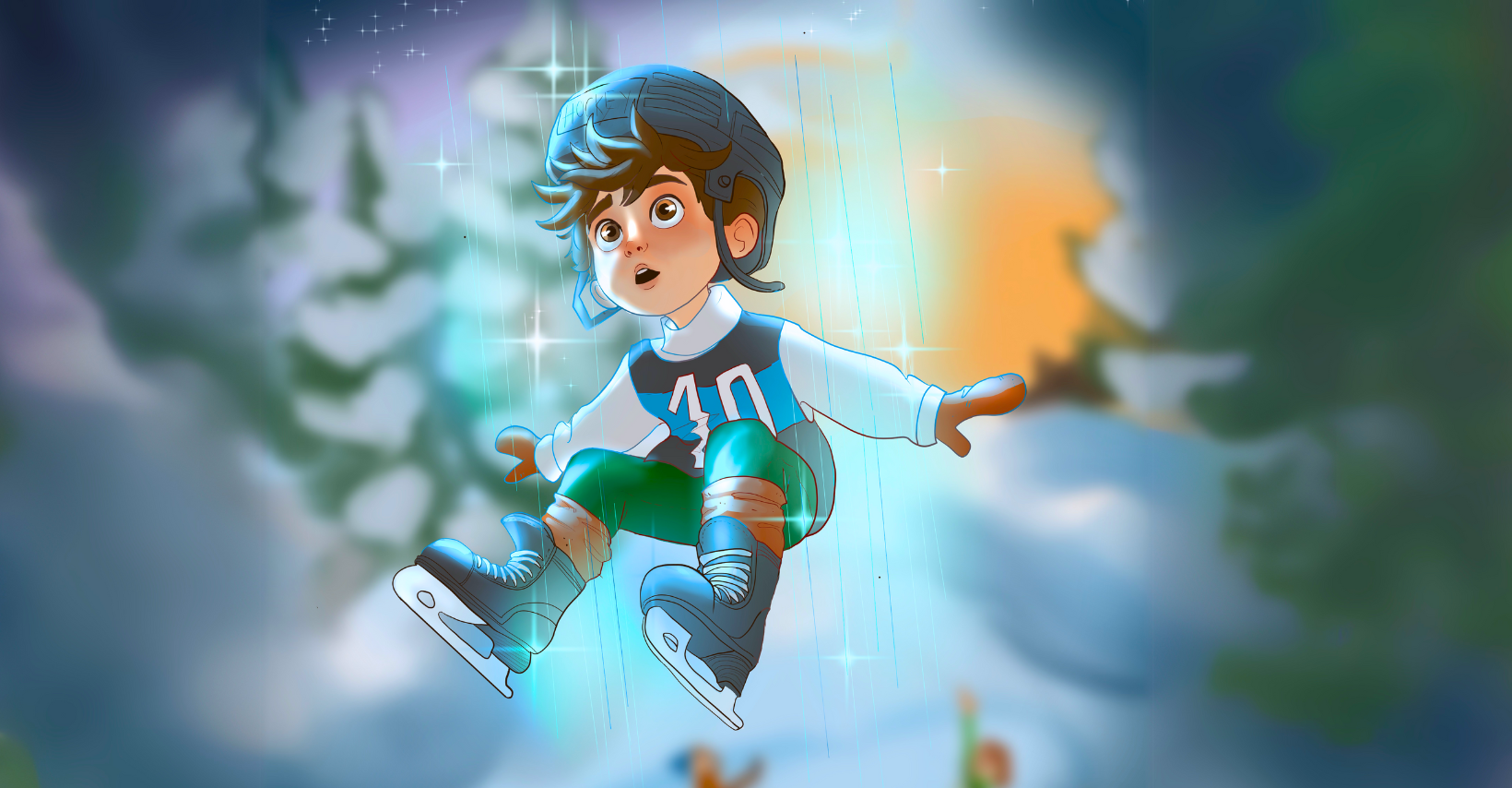 “Vad exakt önskade jag mig?” tänker han. ”Att flyga på isen och bli bra på hockey? Nåväl, låt oss gå med det!”