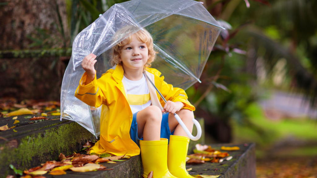 För regniga dagar är det viktigt att barnet har kläder som fungerar även då. Xplora rekommenderar därför att du köper regntåliga kläder såsom: