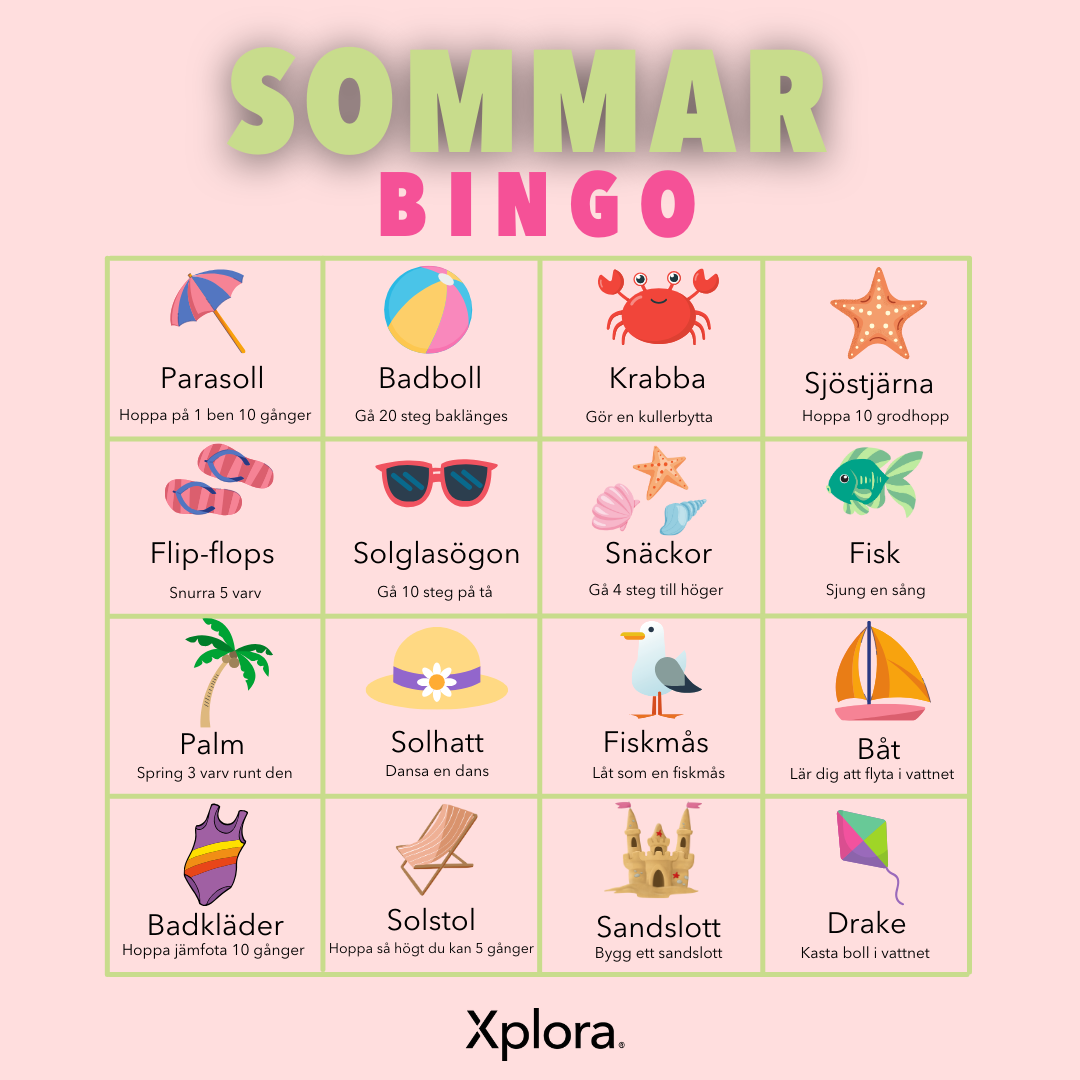 Xploras sommar-aktivitetsbingo för barn ☀️