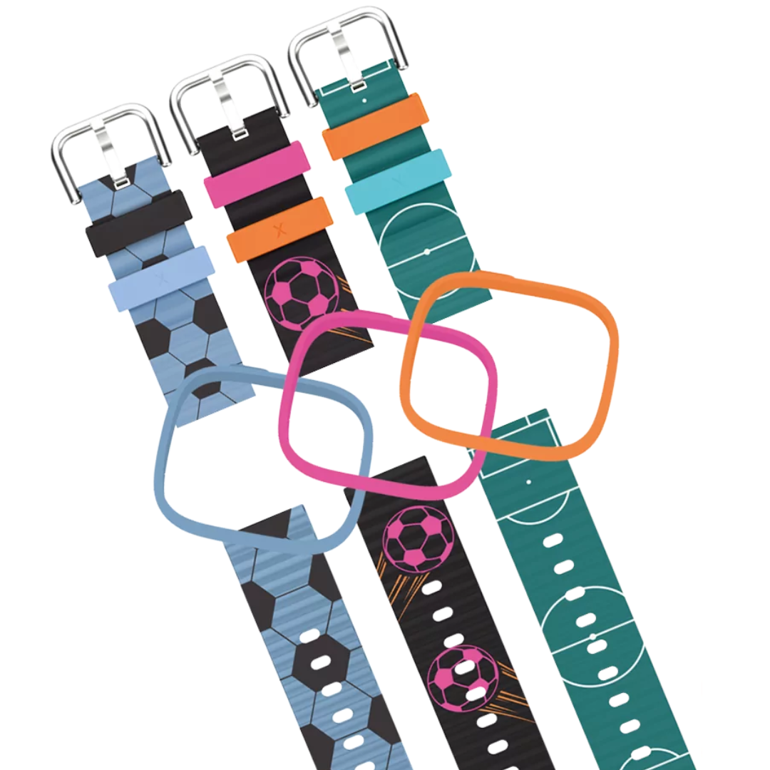 Vårt Fotboll Tillbehörspaket bygger på vårt populära Byt, mix and match-koncept, som uppmuntrar kreativitet och låter barnen anpassa sin smartklocka med sina favoritfärger och kombinationer. Med detta paket blir det ännu enklare för ditt barn att uttrycka sin personliga stil och fotbollspassion!