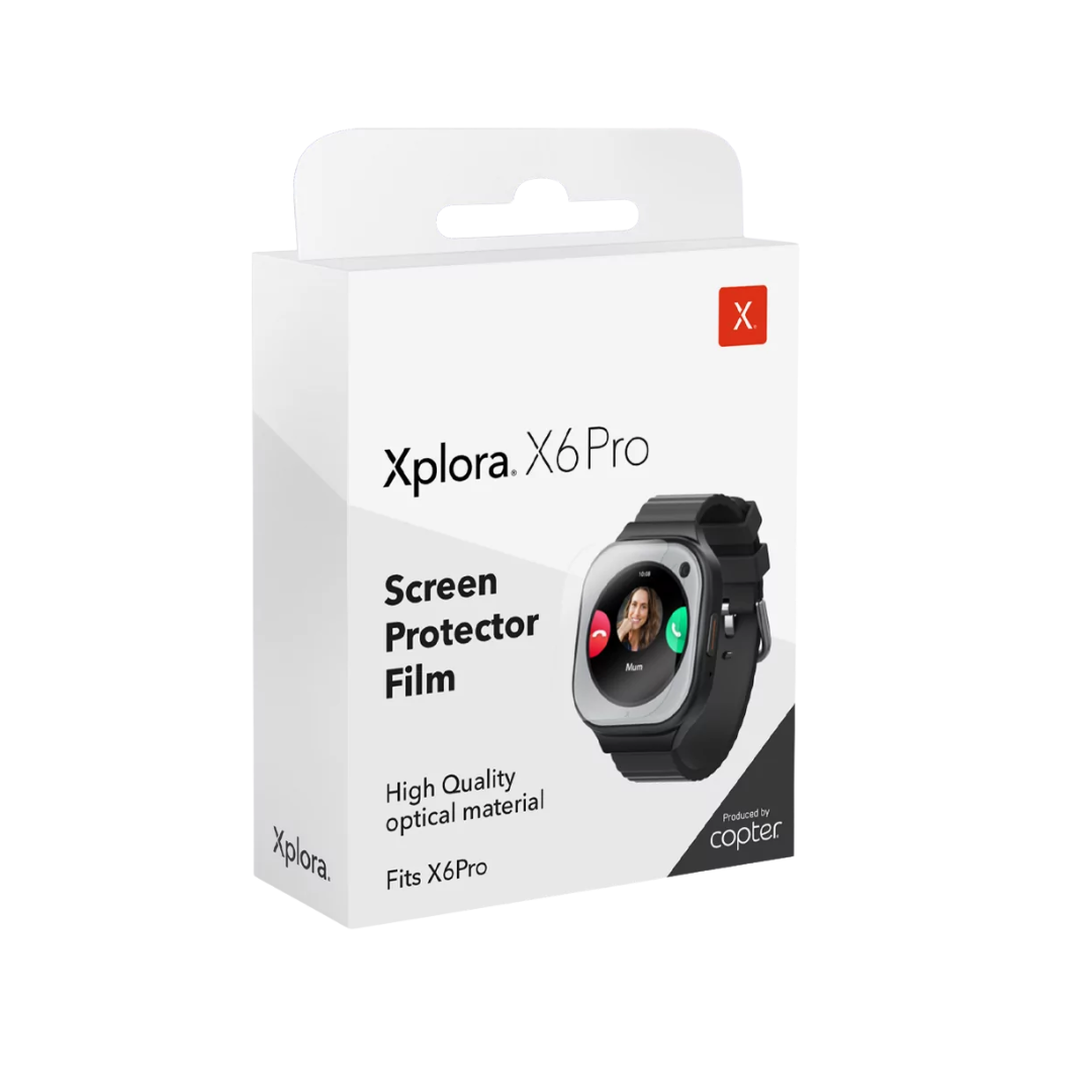 Ett genomskinligt skärmskydd till Xplora X6Pro som gör mobilklockan mer tålig så att den håller längre.